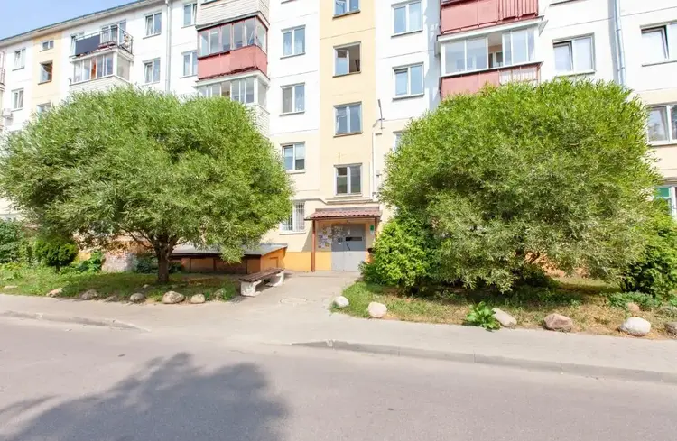 Дом стоит вдали от дороги, много свободных парковочных мест. Из окон открывается отличный вид на взрослые деревья, школу и детский садик.