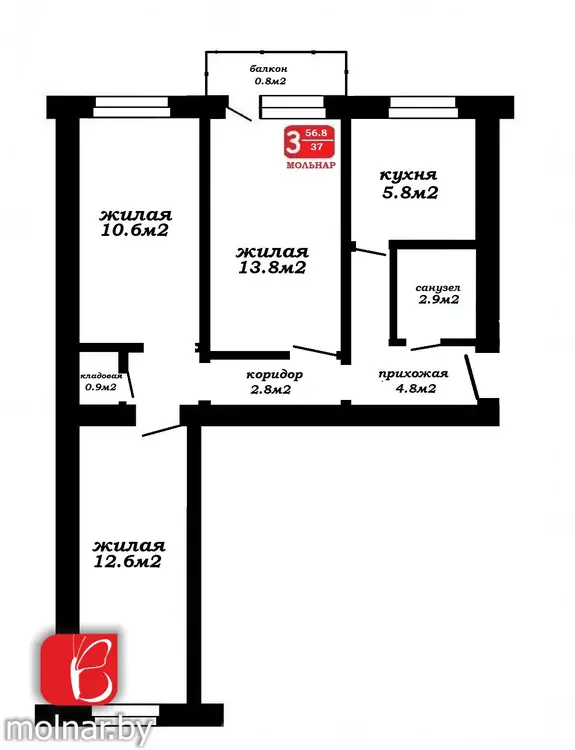 УП "Мольнар", УНП 101107535, лицензия №02240/11 от 17.02.2005г., договор на оказание риэлтерских услуг №352/1 от 01.07.2025 г.