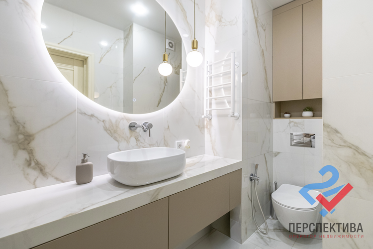 В зонах санузла и ванной Испанский премиальный керамогранит.