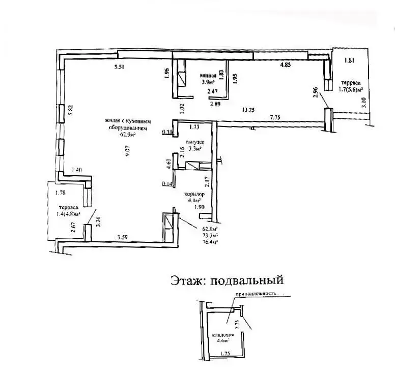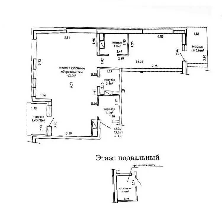 К квартире прилагается большая кладовая 4,6м2