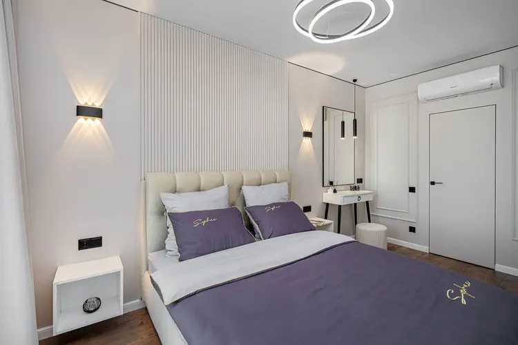 В квартире сделан абсолютно новый ремонт. При отделке использовались дорогие и качественные материалы. Полностью укомплектована мебелью и бытовой техникой, что позволит Вам сразу заселиться без дополнительных финансовых вложений. Установлена стильная кухня. Столешница- компакт плита. Духовой шкаф с функцией самоочистки, варочная панель, посудомоечная машина, встроенный холодильник с морозильной камерой, вытяжка, встроенная свч, стиральная машина. Межкомнатные эмалированные двери. Металлическая входная дверь с видеозвонком. Натяжные потолки Ferico. Два инверторных кондиционера, с возможностью дистанционного управления по Wi-fi. Продуманы и заложены коммуникации под сушильную машину. Ванная комната сделана «под ключ». Установлен проточный водонагреватель, гигиенический душ и уложен тёплый пол.
