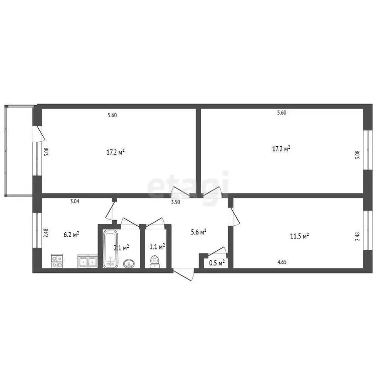 Общая площадь 61,4 кв.м. / жилая 45,9 кв.м. / кухня 6,2 кв.м., просторный застекленный балкон. Есть вместительный подвал!
