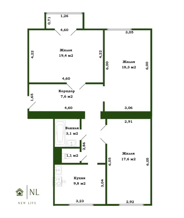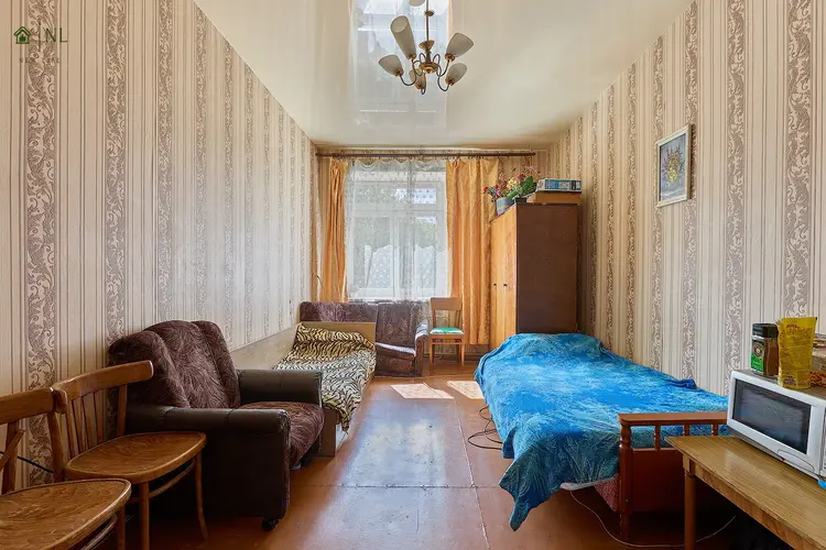 4 этаж из 5 в кирпичном доме, сталинка. 3 раздельных комнаты (19,4 м2, 18,3 м2, 17,6 м2) кухня 9,8 м2. С/у раздельный. Жилое состояние: натяжные потолки, стеклопакеты, при капремонте поменяли сантехнику, двери входные новые. Перекрытие- железобетонное. Есть балкон. Высота потолков 2,9 м. Имеется подвальное помещение.