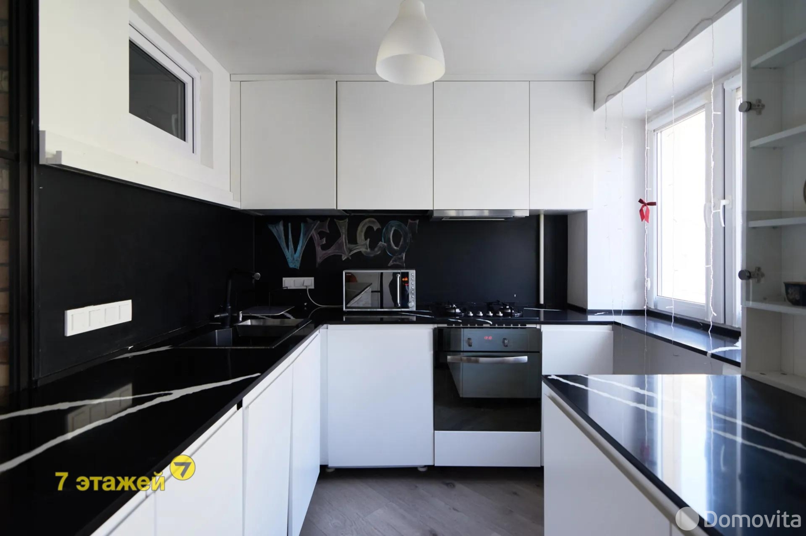 Сделан качественный дизайнерский ремонт. Установлены стеклопакеты ПВХ. Встроенная кухня сделана под заказ. Варочная панель Indesit, посудомоечная машина Hotpoint, Стиральная машина Smart LG.Оборудован гардероб. Установлен Кондиционер фирмы Midea.В сан.узле современная плитка. В жилых комнатах на полу кварцвинил. Металлическая входная дверь.