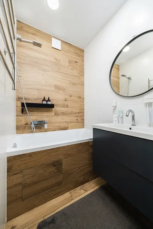 Санузел: современная цветовая гамма, качественная плитка, сантехника импортного производства с термостатическим смесителем, который гарантирует постоянную температуру выходящей воды.