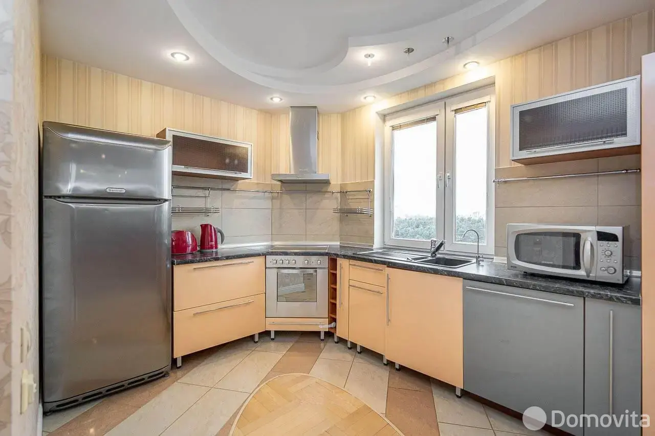 Встроенная кухня с техникой (варочная поверхность, духовой шкаф, вытяжка, посудомоечная машинка, холодильник). Классное решение, которое Вам точно понравится-раковина с рабочей зоной размещены под окном.