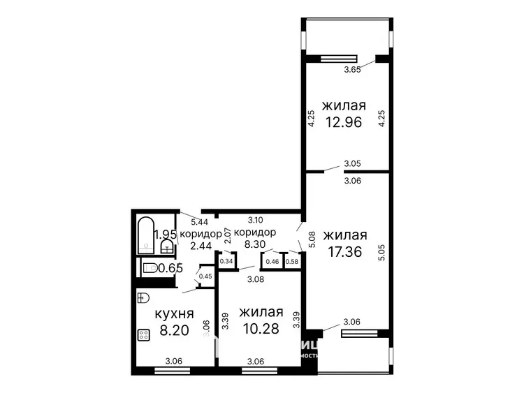 Общая площадь: 62.36. Жилая площадь: 40.5. Площадь кухни: 8.2. Высота потолка: 2.5.