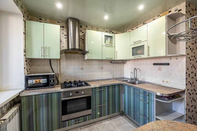 В квартире все комнаты просторные и изолированные, они идеально подойдут для дружной семьи, в которой каждый найдет своё место. Кухня размером в 8,3 м2 – оснащена бытовой техникой: газовая плита, вытяжка, холодильник, печь СВЧ. Вполне достаточно места и для обеденной зоны, и для зоны готовки; стены оклеены обоями, фартук облицован плиткой. Санузел раздельный, облицован плиткой.