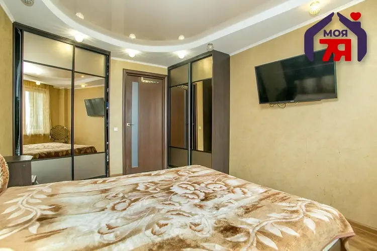 - Ремонт в квартире аккуратный, жилой: в комнатах напольные покрытия в хорошем состоянии, стены оклеены обоями, потолки подвесные с зонированной подсветкой. В одной из комнат и прихожей установлены шкафы-купе. Квартира светлая, тёплая, с хорошей планировкой.