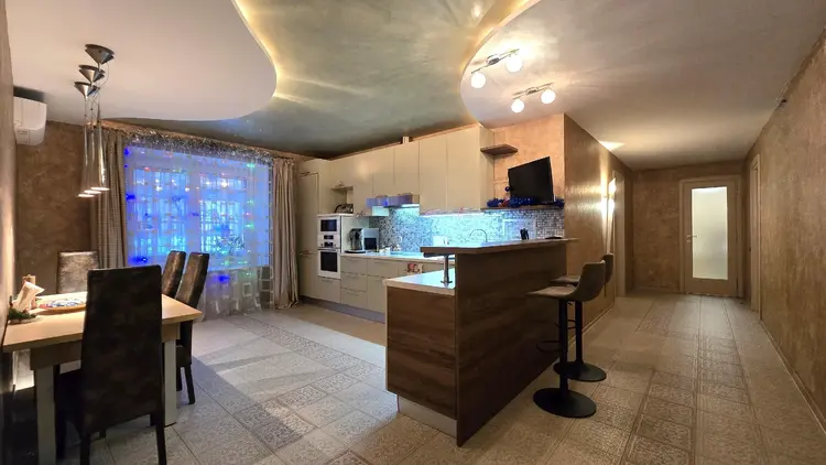 • Кухня полностью оборудована: вместительный холодильник, духовой шкаф, посудомоечная
