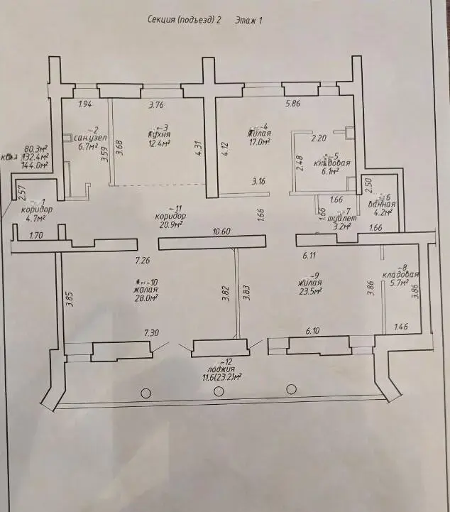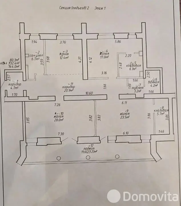 • Площадь по СНБ 144 м.кв., общая – 132,4 м.кв., жилая – 80,3м.кв.