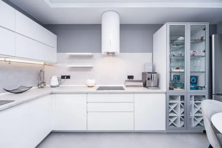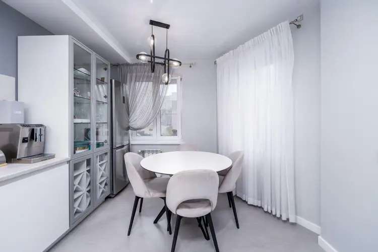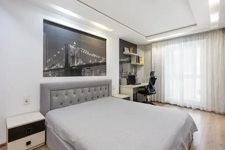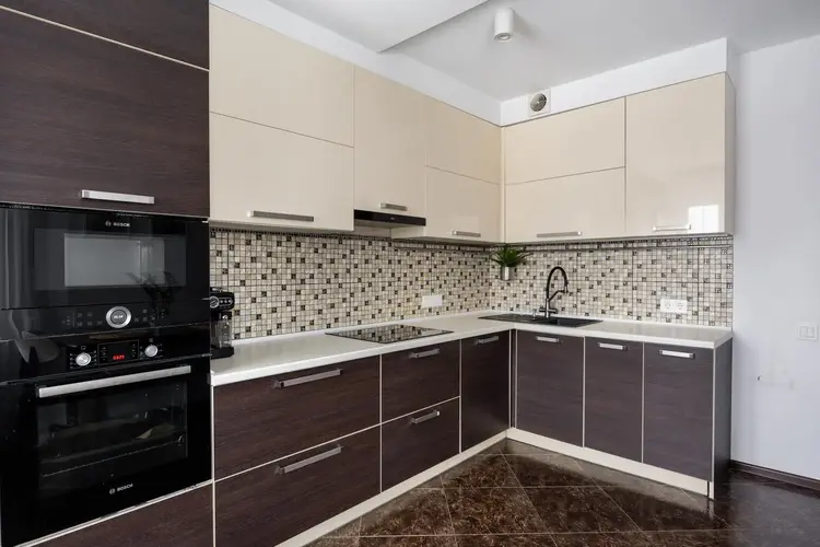Функциональная и стильная кухня, укомплектована мебелью и техникой Bosch: посудомоечная машина, варочная панель, духовой шкаф, микроволновая печь, вытяжка, холодильник.