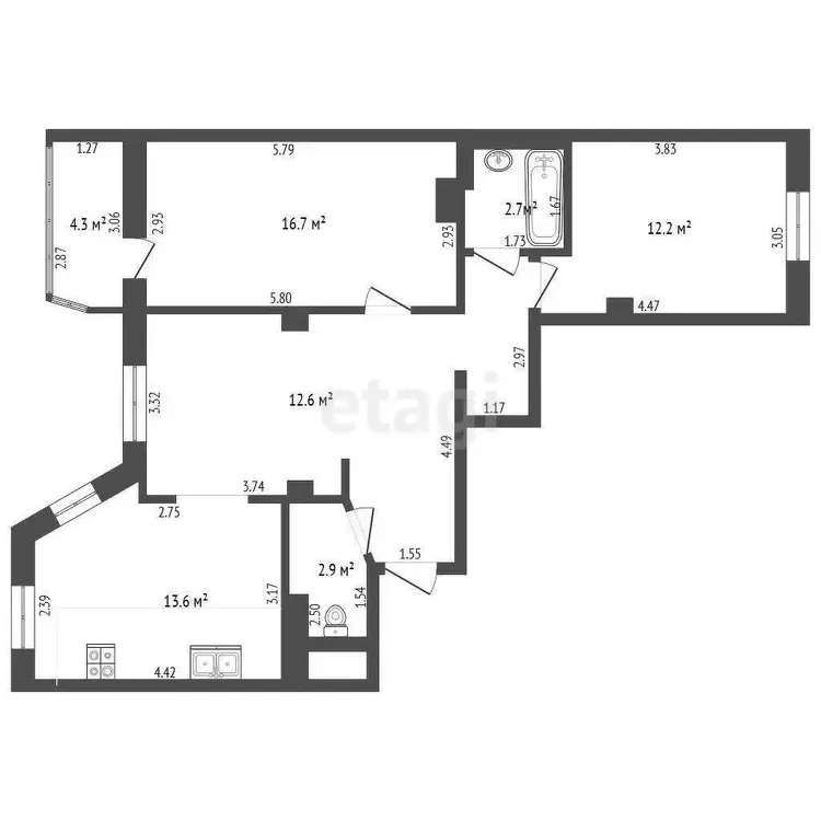 Общая площадь по СБН 77,4 м2, жилая 42,2 м2. Квартира расположена на 13-м этаже 16-этажного дома, что обеспечивает тишину, приятный вид и максимум естественного света.