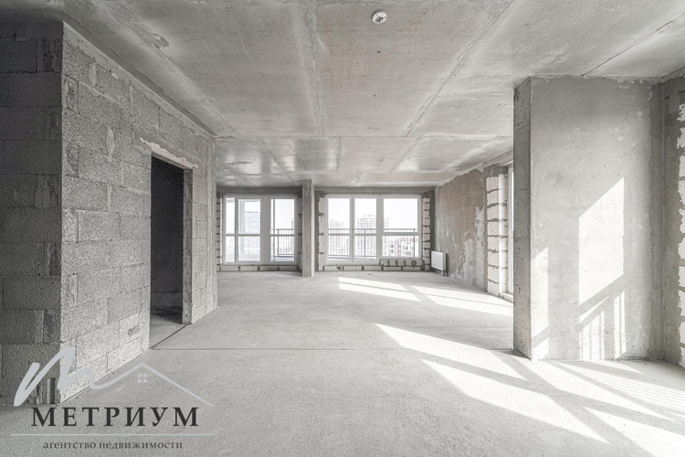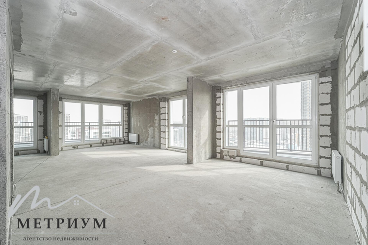 и редкая квадратная планировка. Три балкона и панорамные окна на две стороны. Высота потолков -2,71 м.кв.