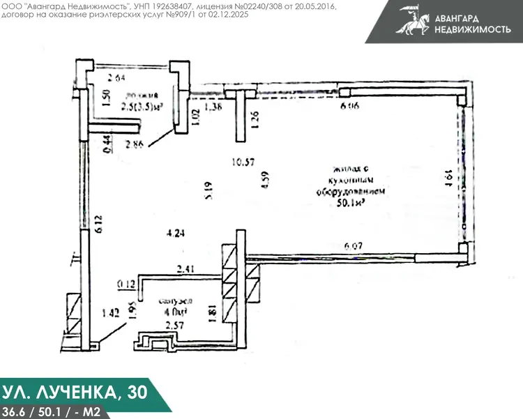 УП "Мольнар", УНП 101107535, лицензия №02240/11 от 17.02.2005г., договор на оказание риэлтерских услуг №586/1 от 21.11.2025 г.