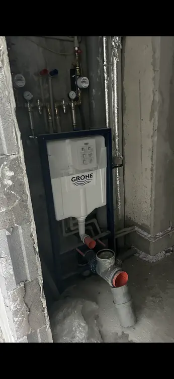 2. Совмещенный санузел оснащен качественной европейской сантехникой: просторная ванна, современная инсталляция и стильная подвесная тумба из натурального дуба с накладным умывальником.