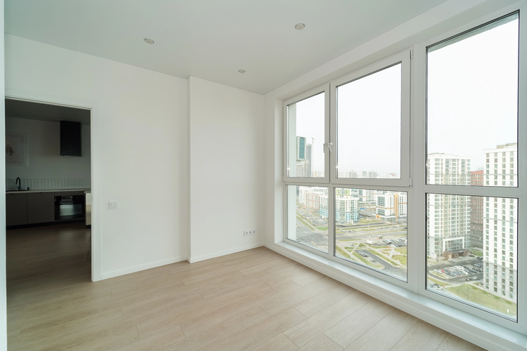 От застройщика в квартире качественное остекление,вся фурнитура немецкого производителя Siegenia, за счет чего, звукам с улице сложно проникнуть в помещение.