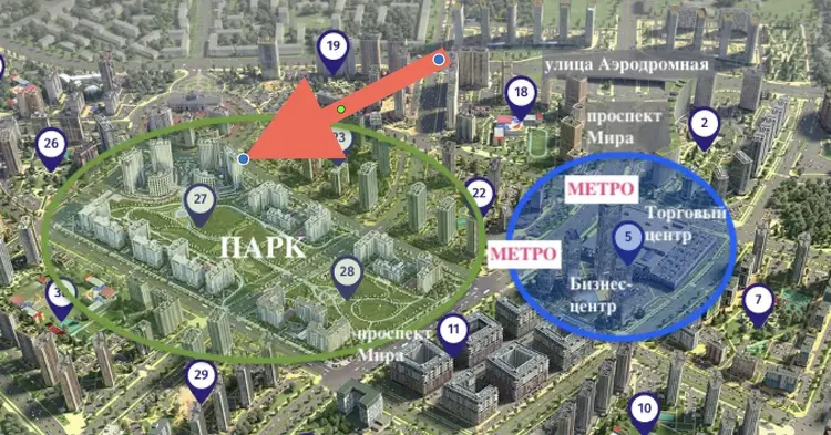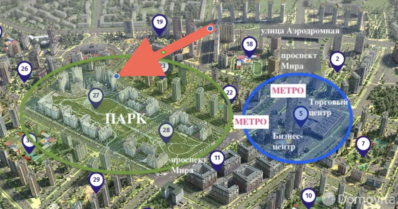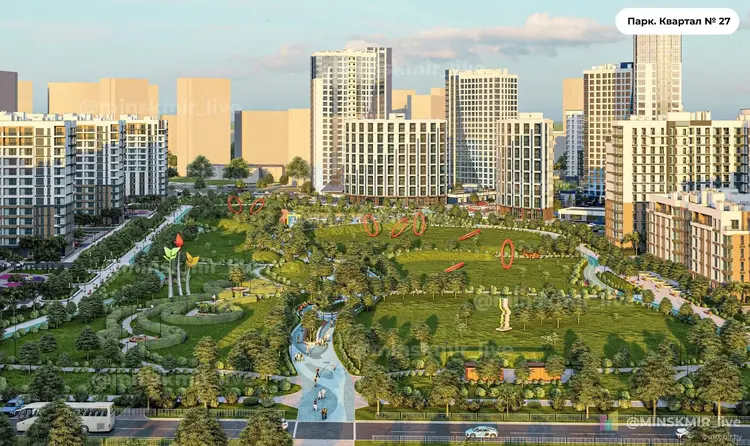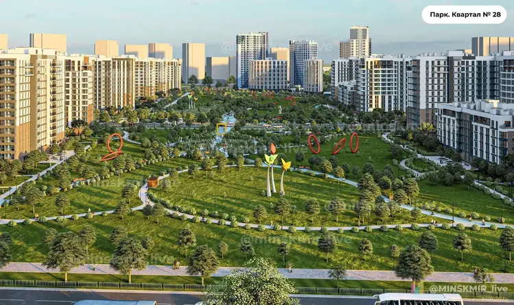 Квартал «Парк» располагается в центральной части многофункционального комплекса ЖК Минск-Мир, где реализован передовой концепт городской застройки — «15-минутный город».