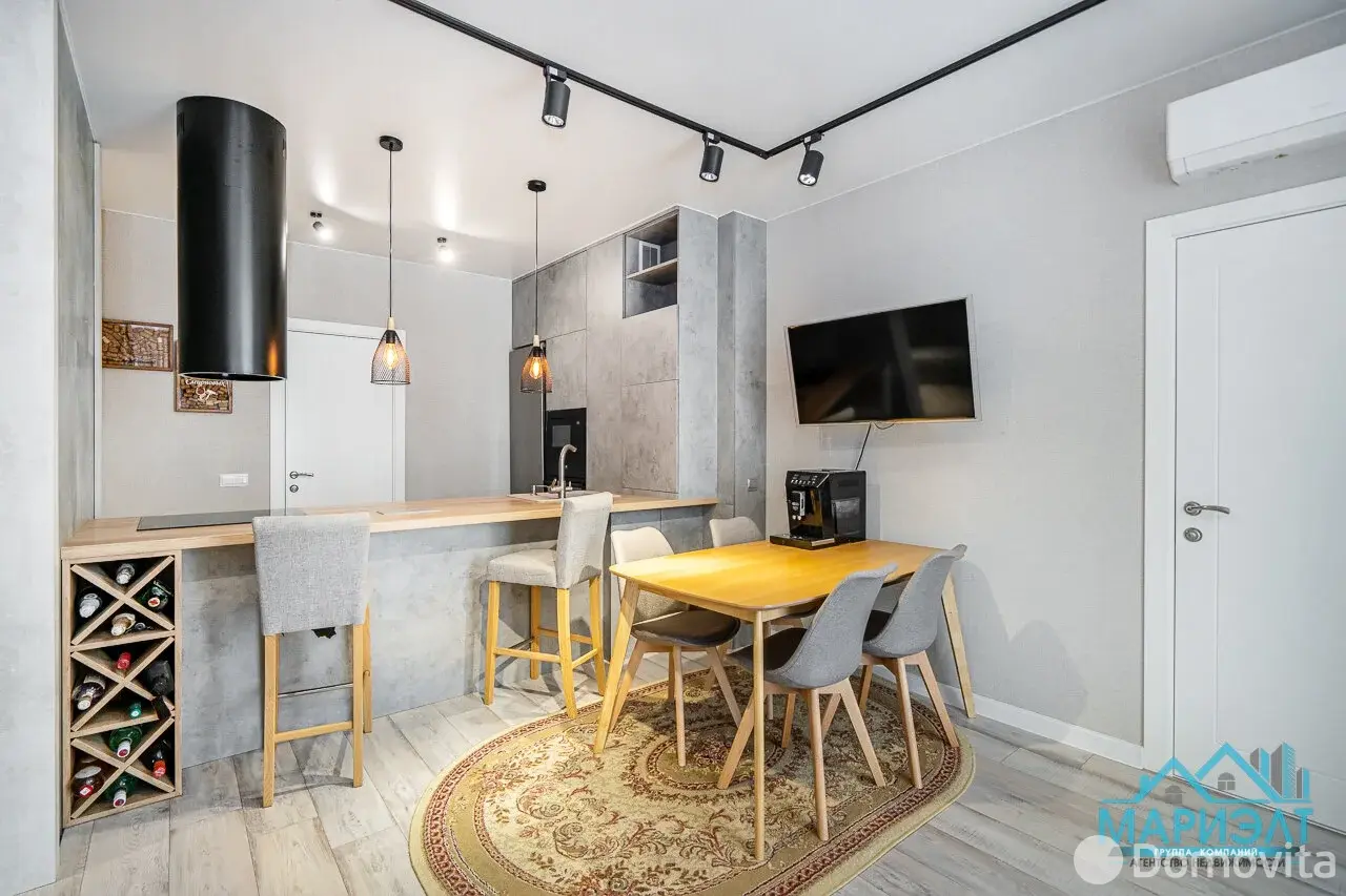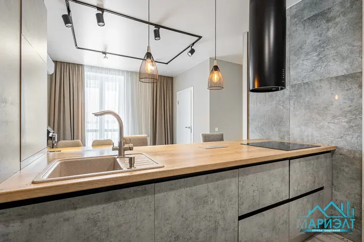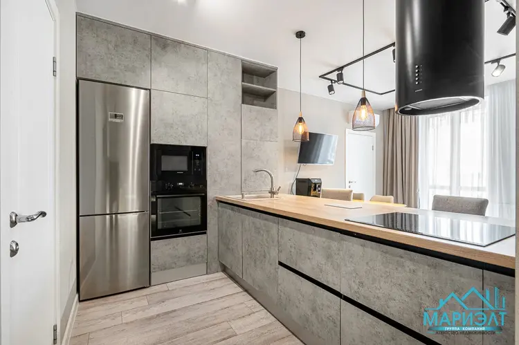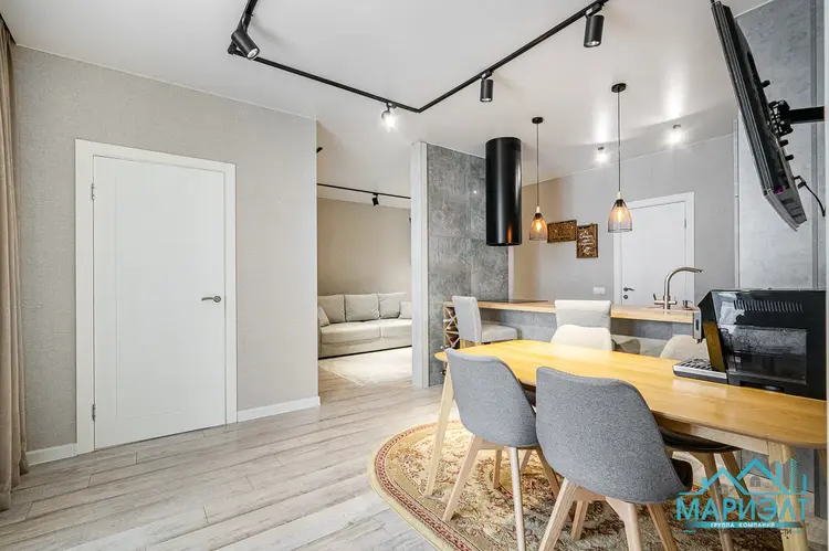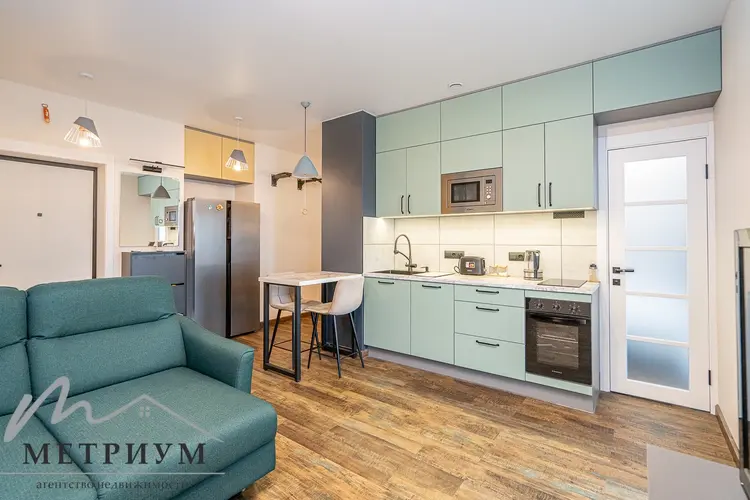 - В шаговой доступности есть всё необходимое для комфортного проживания: несколько общеобразовательных школ и детских садов, супермаркет «Евроопт», ТРЦ «Arena-City», спортивные и медицинские учреждения, объекты сервисного обслуживания и досуга.