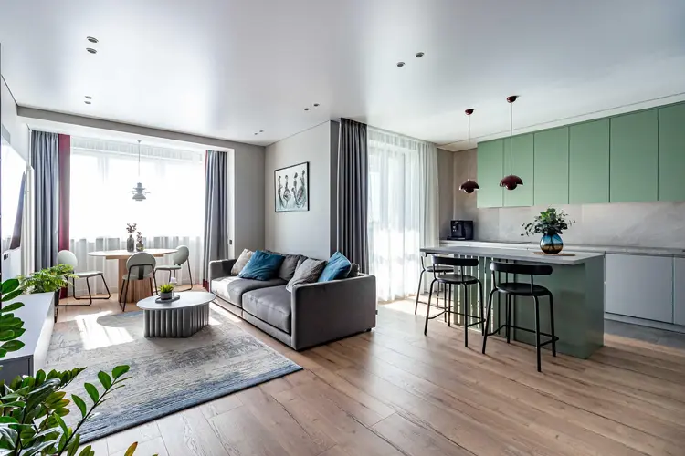 Светлая, уютная, с рациональной европланировкой, площадью 68.4 м.кв: просторная кухня-гостиная, детская, спальня.