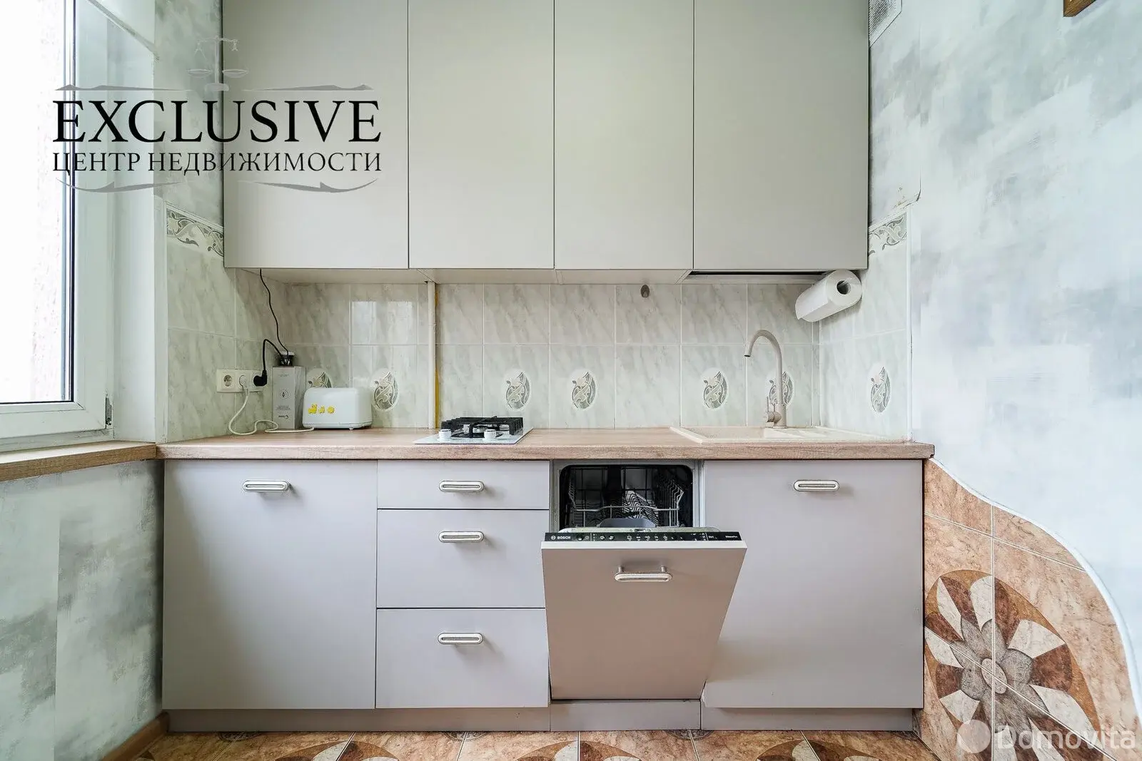 Уютная кухня с удобной рабочей поверхностью, всей необходимой техникой, посудомоечной машиной и множеством мест хранения. Холодильник шире стандартных размеров и утоплен в специально организованную нишу, что сохраняет пространство. Установлены счётчики на газ и воду.