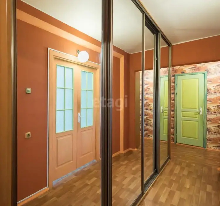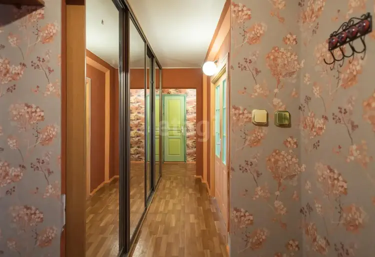 Вдоль всего коридора установлен вместительный шкаф-купе — продуманное решение для хранения.