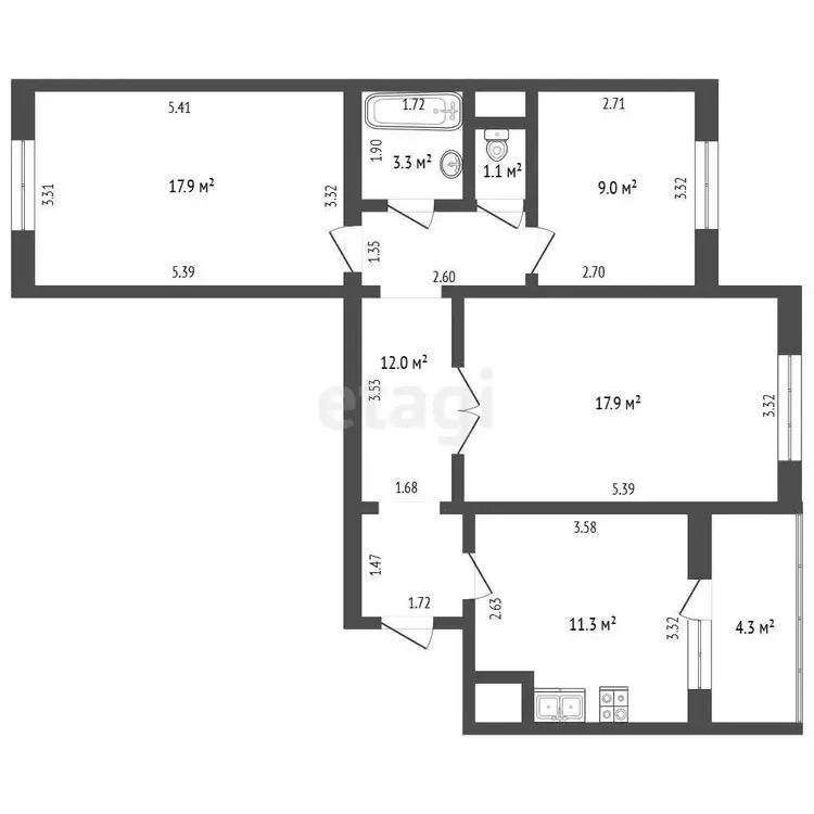 Общая площадь — 75,5 м2 по СНБ.