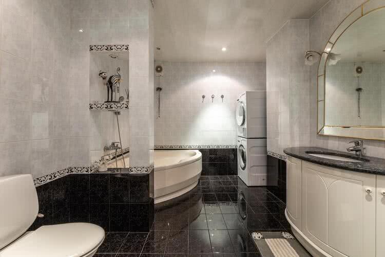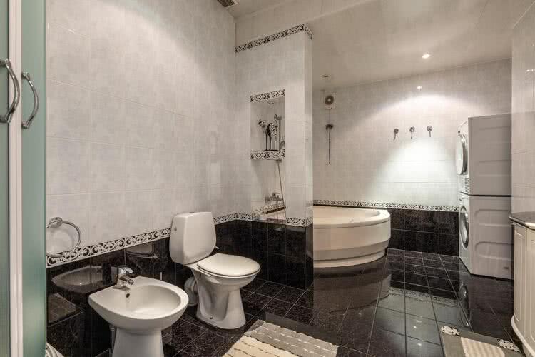 В отделке всех помещений квартиры использовались ценные натуральные материалы. Особый шик и удобство квартире придаёт огромный санузел.