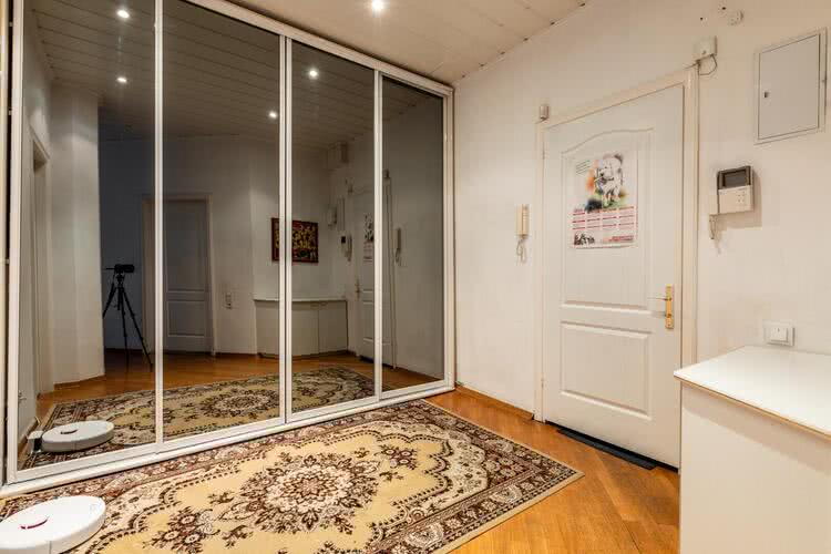 Квартира находится на комфортном втором этаже, из окон открывается чудесный вид на парк Горького и реку Свислочь. Потолки высотой больше 3 метров и площадь 92,5 метра дают ощущение простора и свободного пространства, наполняют квартиру воздухом и естественной прохладой.