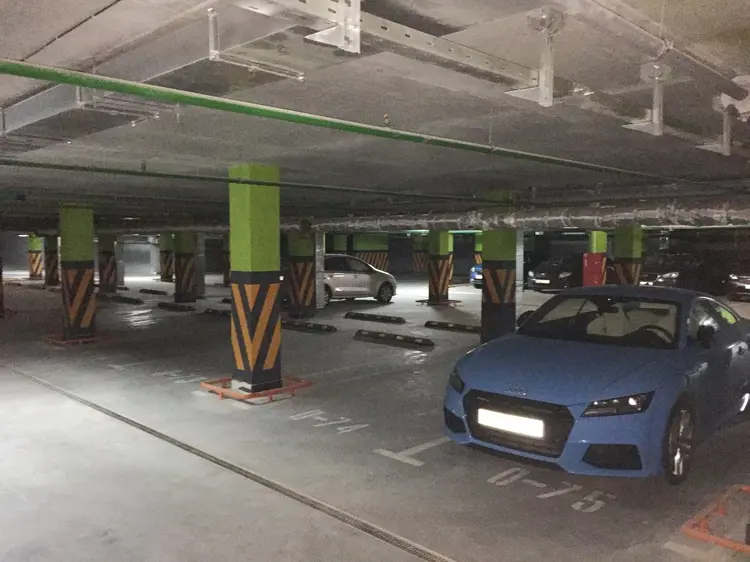 Лифт опускается в подземный паркинг (есть места на продажу).