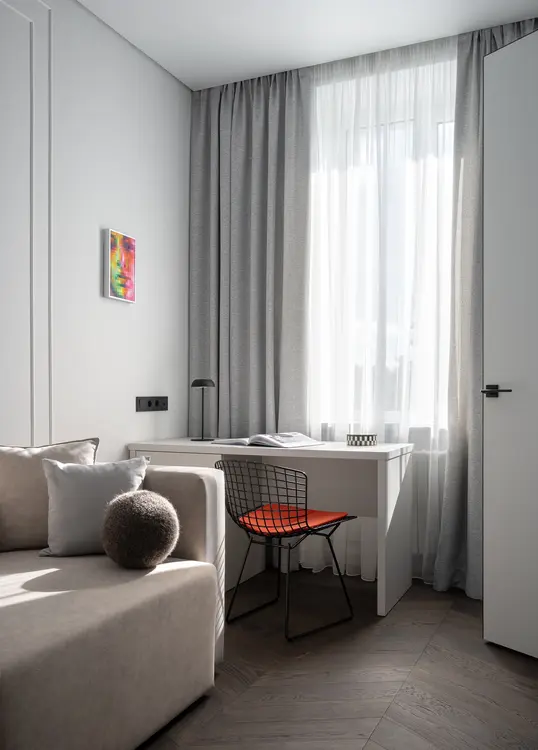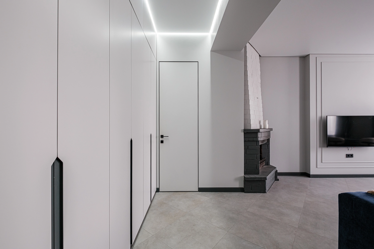 Двери скрытого монтажа в комнатах создают эффект целостности и минимализма, позволяя пространству выглядеть более современно и аккуратно.