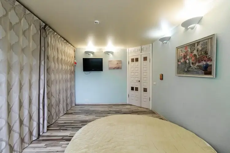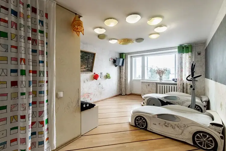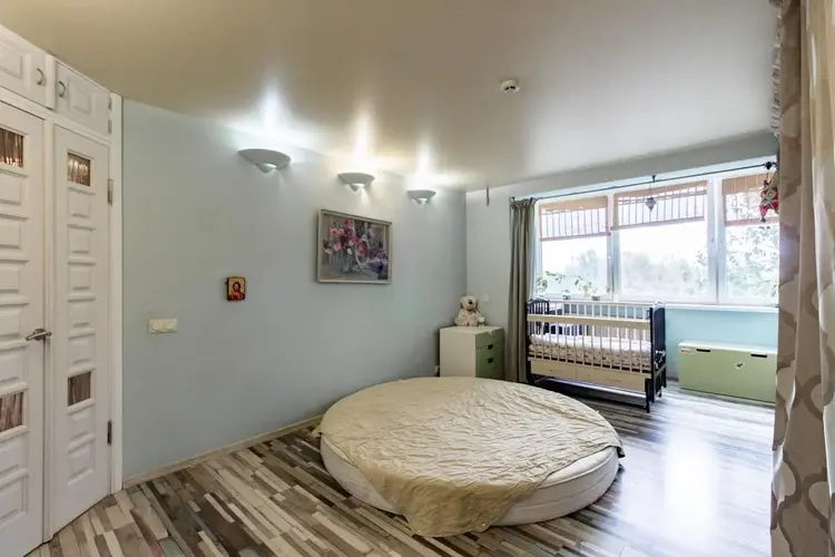 В квартире сделана перепланировка-обьеденены кухня и комната.Получилось большое пространство,что придало помещению объем и функциональность,. Перепланировка утверждена.Есть все документы.