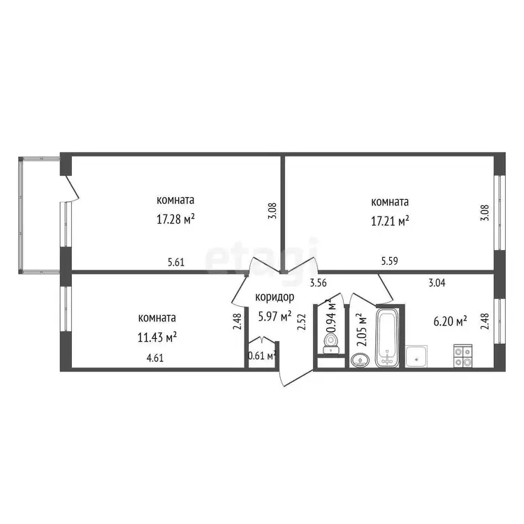 · Общая площадь - 61,7 м2., жилая – 45,92 м.2, кухня 6,2м2, застекленная лоджия