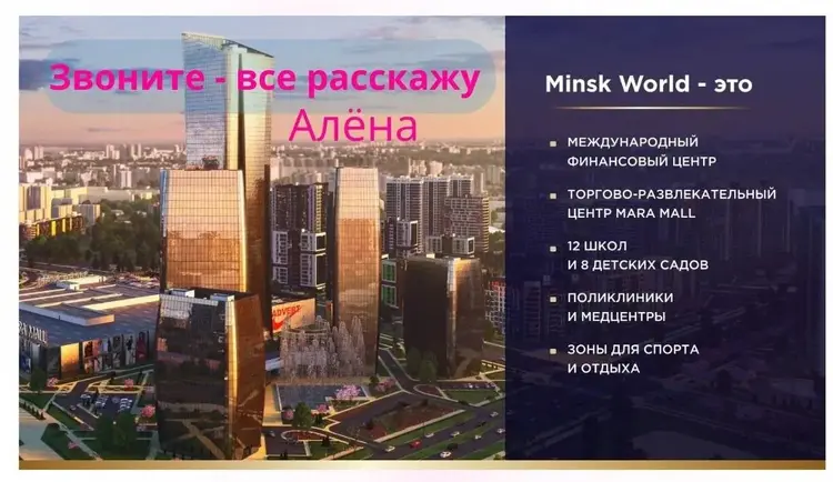 В Minsk World возводится Международный финансовый центр, символ деловой энергии современной Беларуси, а также крупнейший в стране торгово-развлекательный комплекс «Avia Mall».