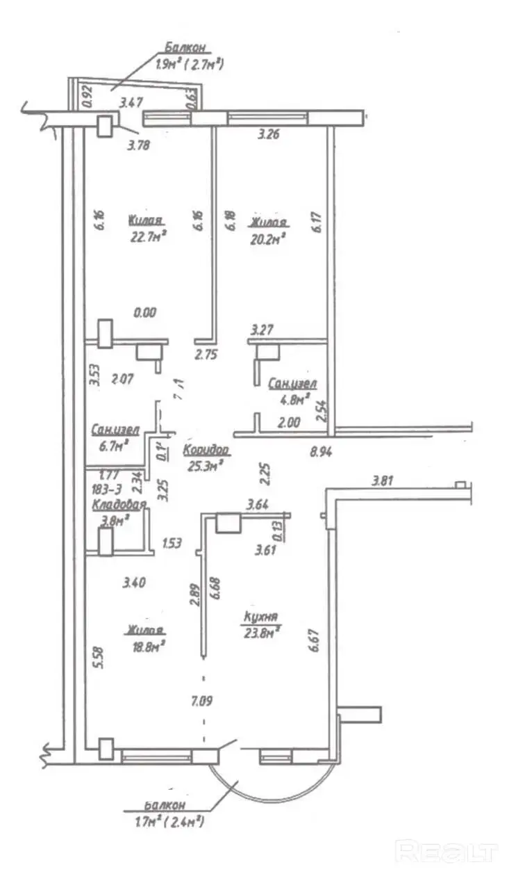 Просторная 3-комнатная квартира в престижном районе Минска.