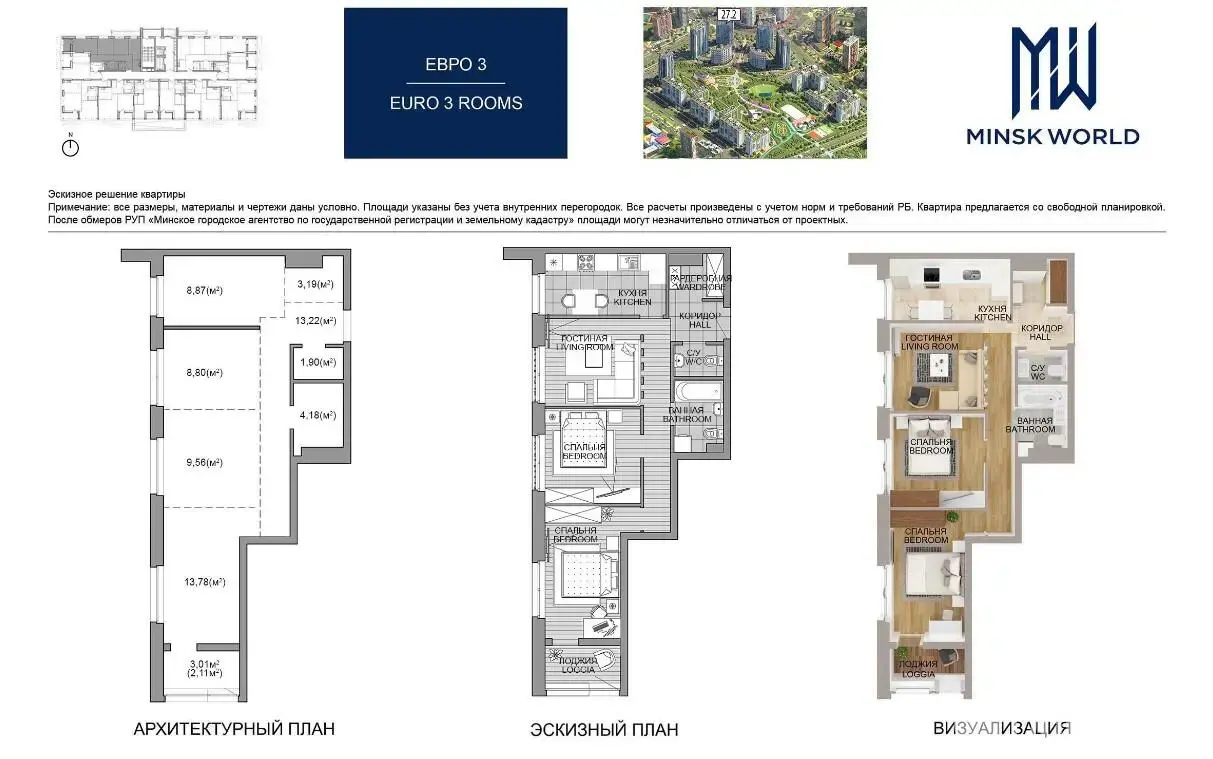 Продажа 3-комнатной квартиры в Минске, ул. Леонида Левина, д. 1