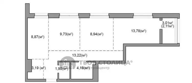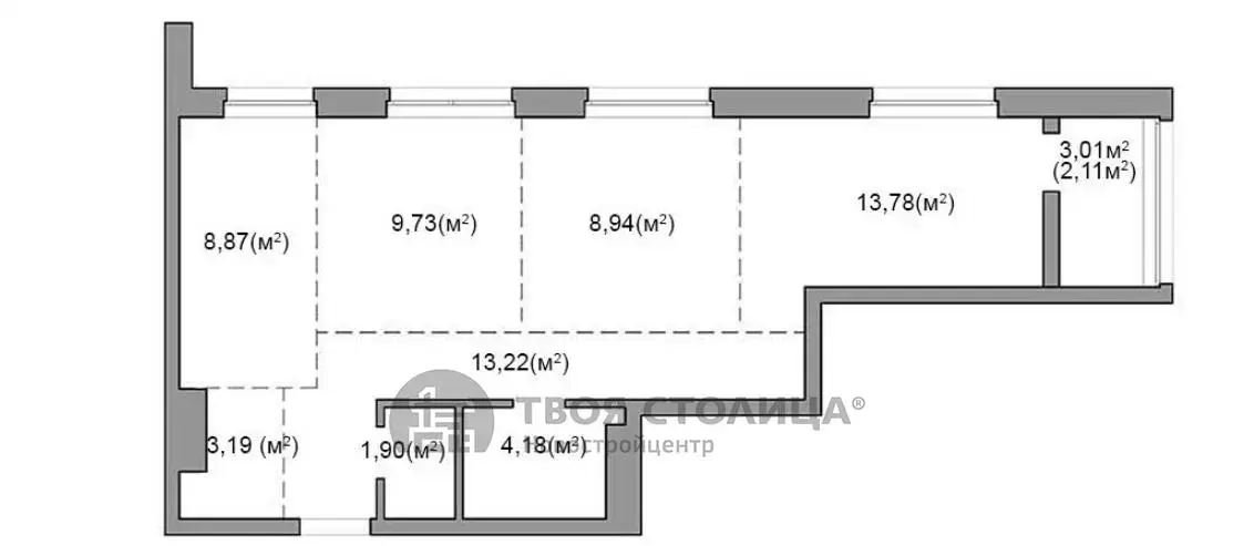 Квартира 65 кв.м. в свободной планировке, дом сдан.