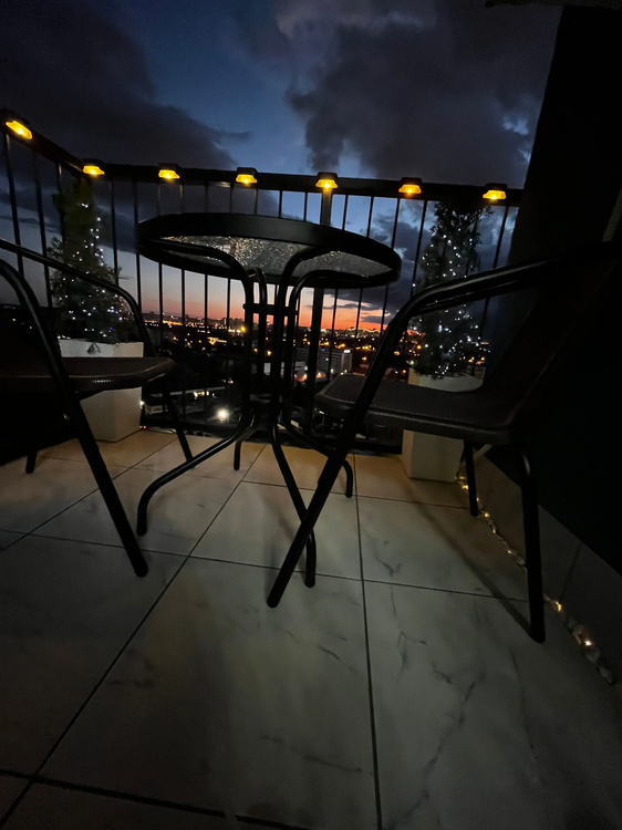 Также имеется открытый балкон с зоной отдыха (уложена качественная плитка, закуплена мебель и посажены туи в горшках, а также дополнительно установлена подсветка на солнечной батарее).