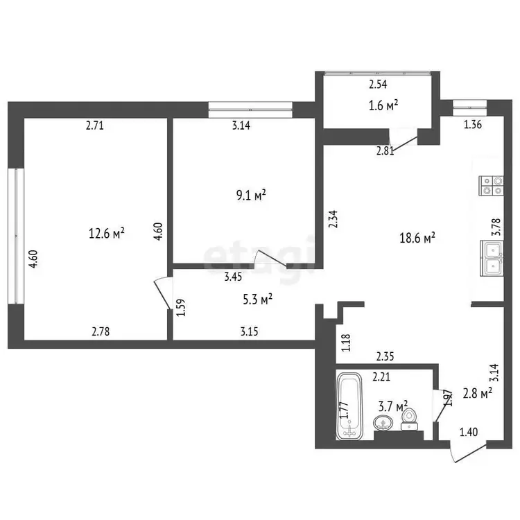 - Санузел: полноценная ванна с встроенным душем и стеклянным защитным экраном, стиральная машина, накопительный водонагреватель, просторная столешница с накладной раковиной.