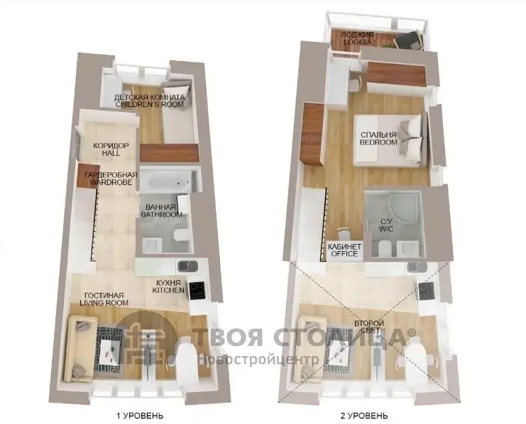 Двухуровневая квартира свободной планировки.