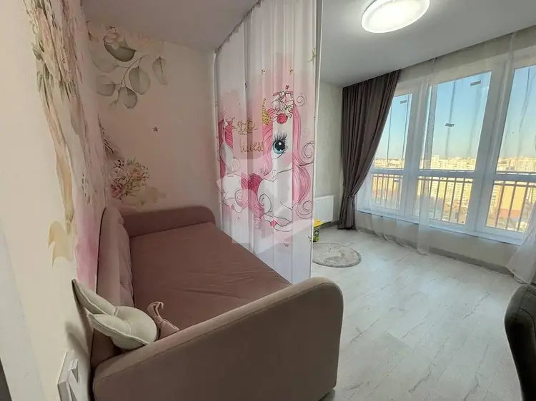 • Продуманная планировка. В квартире две отдельные комнаты ( одна детская, с разделением спальной зоны , вторая хозяйская спальная ) и просторная кухня-гостиная с большой функциональной кухней