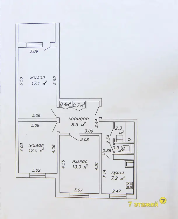 Три раздельные комнаты. Гостевая зона с эркерным окном, через которое в квартиру попадает много солнечного света.