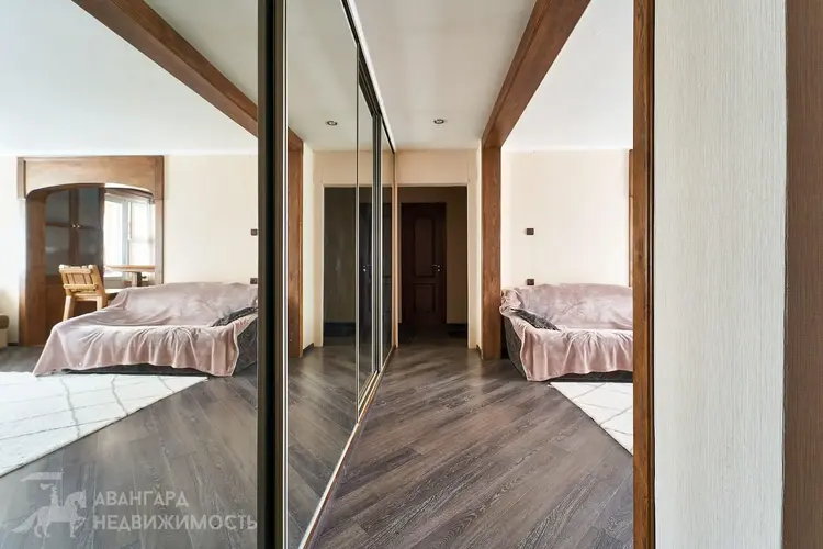 Отличная планировка – две широкие застекленные лоджии, санузлы удалены от кухни. Добротный ремонт, выполнен из качественных материалов. Кухня и межкомнатные двери – массив. Установлены стеклопакеты. На полу – ламинат, на стенах обои. В санузлах и на кухне уложена плитка – все максимально практично.