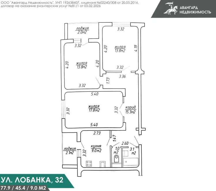 Дом повышенной комфортности 2000 года, находится в зеленой зоне. Квартира расположена на 6-м этаже 12 дома. Общая площадь по СНБ – 77.9 м2, жилая – 45.4 м2, кухня – 9 м2. Высота потолков 2,61 м.