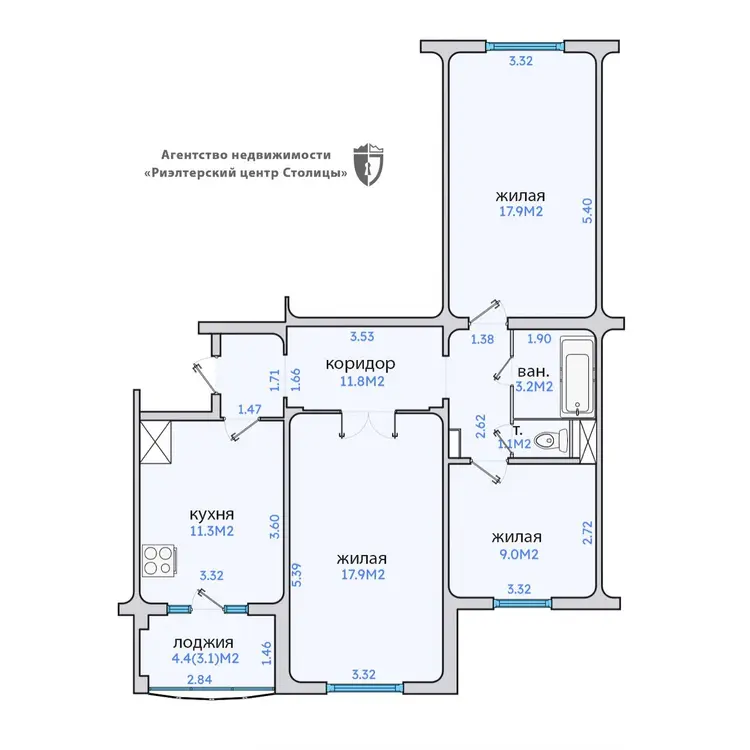 - Площадь и планировка: 75.3 кв.м. Удачная планировка с изолированными комнатами.
