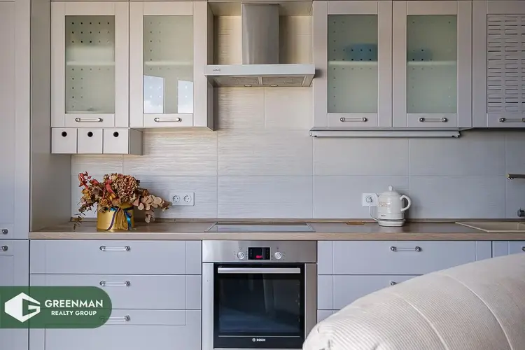 · Светлая и современная кухня с массой мест для хранения, вся техника Siemens (паровой-духовой шкаф), микроволновая печь, посудомоечная машина, варочная панель и кофемашина. Рабочие поверхности и скиналь в красивом чёрном кварце, максимально дорогом и качественном.