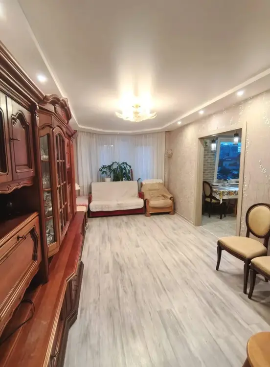 На кухне – плитка. В остальных комнатах – ламинат. Натяжной потолок. Разведена дополнительно электрика по квартире .