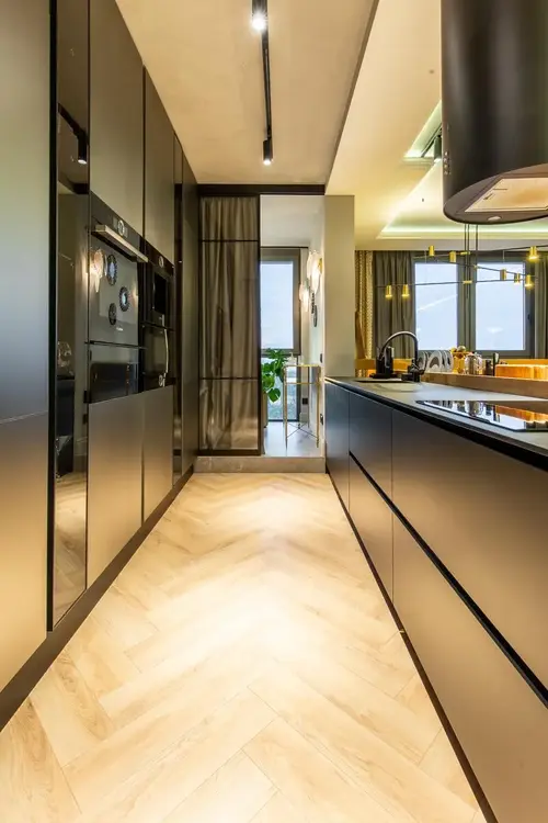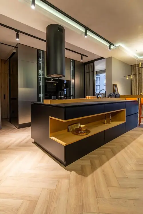 Просторная кухня-гостиная почти 50м2 - сердце квартиры, где удобно готовить, отдыхать и собираться с близкими.