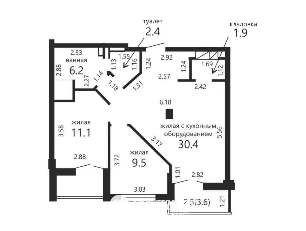 Площадь по СНБ 66 Общая площадь: 61.5. Жилая площадь: 52.9. Высота потолка: 2.75.