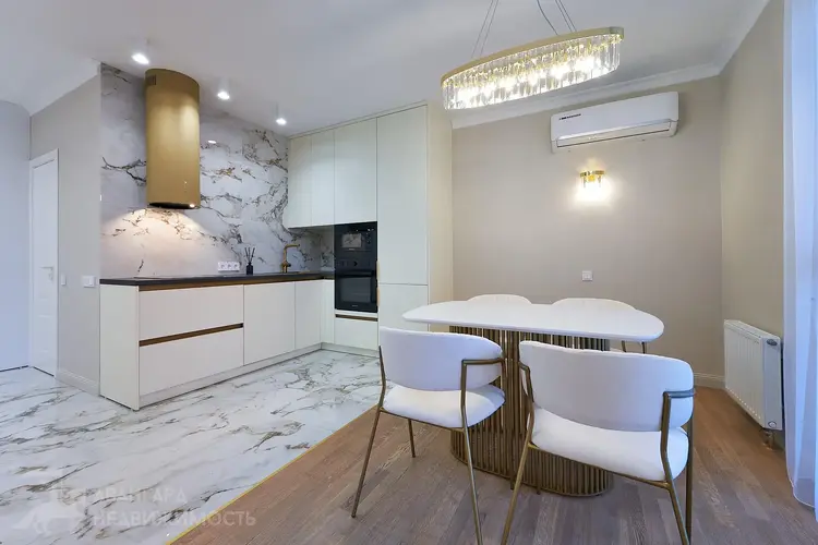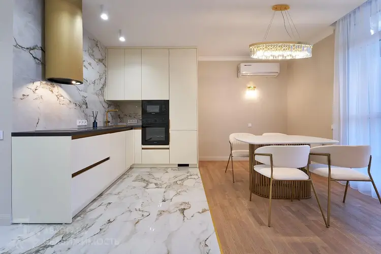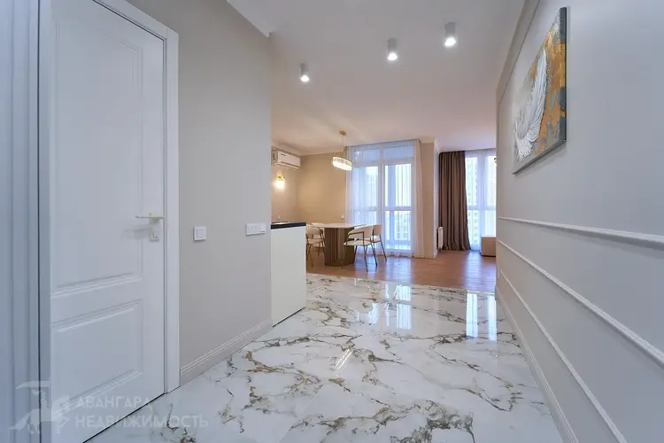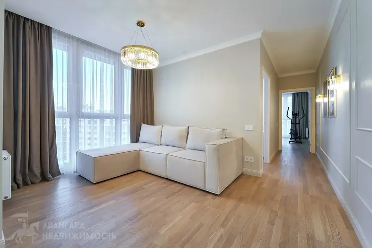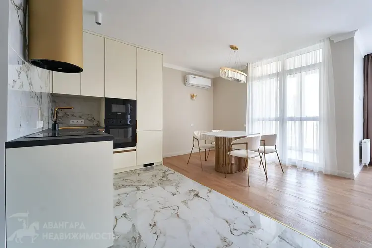 Площадь квартиры по СНБ - 74,7 м2. Панорамные окна во всей квартире. Кухня-гостинная, спальня, комната под рабочий кабинет или детскую комнату, гардеробная для хранения вещей с установленной стиральной машиной, совмещенный санузел, просторная лоджия для Ваших идей. Качественная встроенная техника, в т.ч. индукционная варочная панель, посудомоечная машина, стиральная машина, холодильник, духовой шкаф. Мебель выполнена по индивидуальному заказу. Разведены проходные выключатели и установлен кондиционер.
